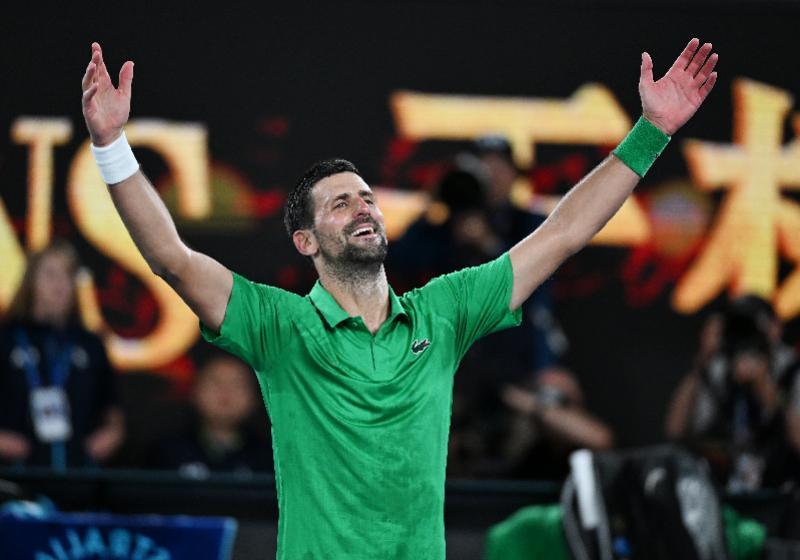 当地时间1月30日,在澳大利亚墨尔本进行的2026年澳大利亚网球公开赛男单半决赛中,塞尔维亚选手德约科维奇3比2战胜意大利选手辛纳,晋级决赛。 新华社发(王申摄)